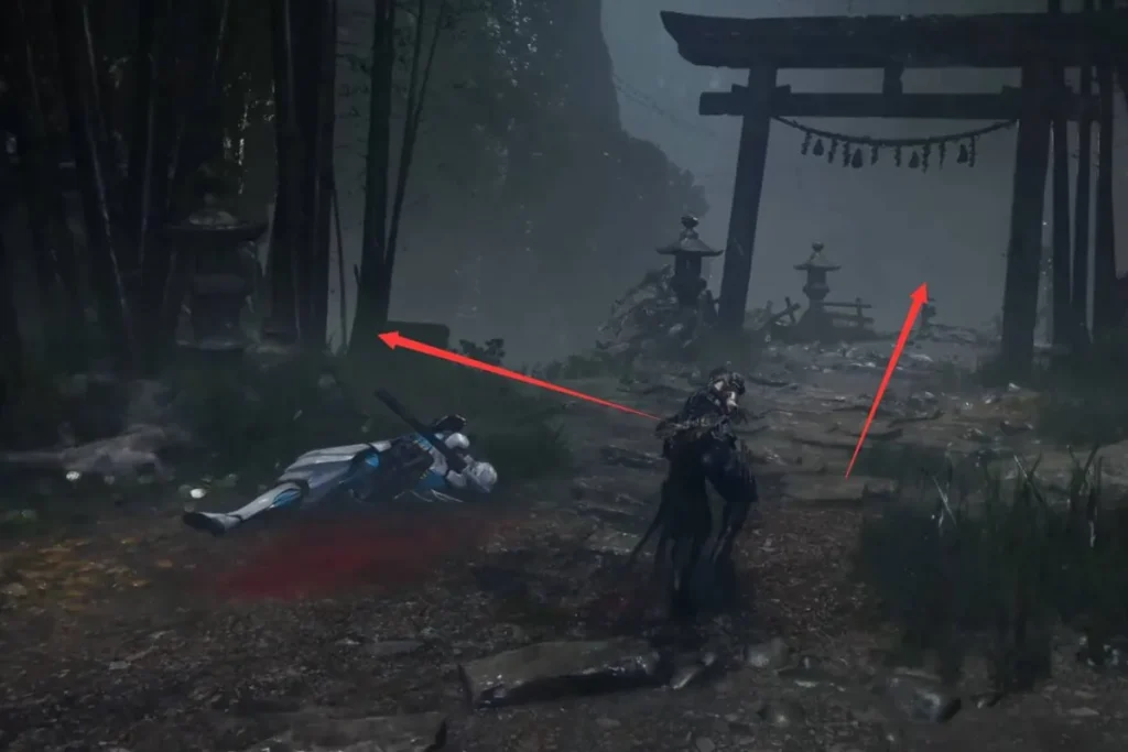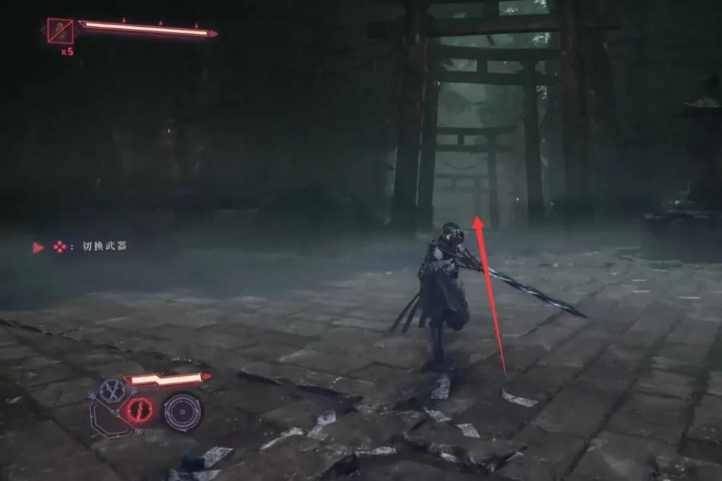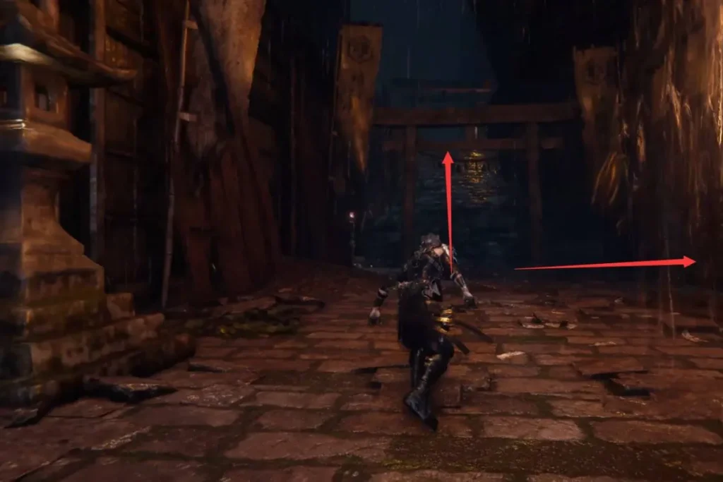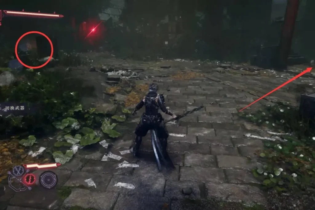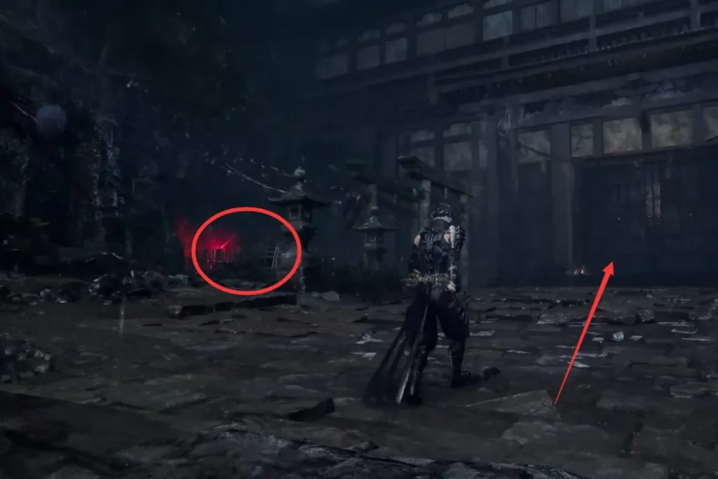 前方院子裡雖然有敵人,但先不用理會,之後探索完右邊的岔路就會自然回到該處。