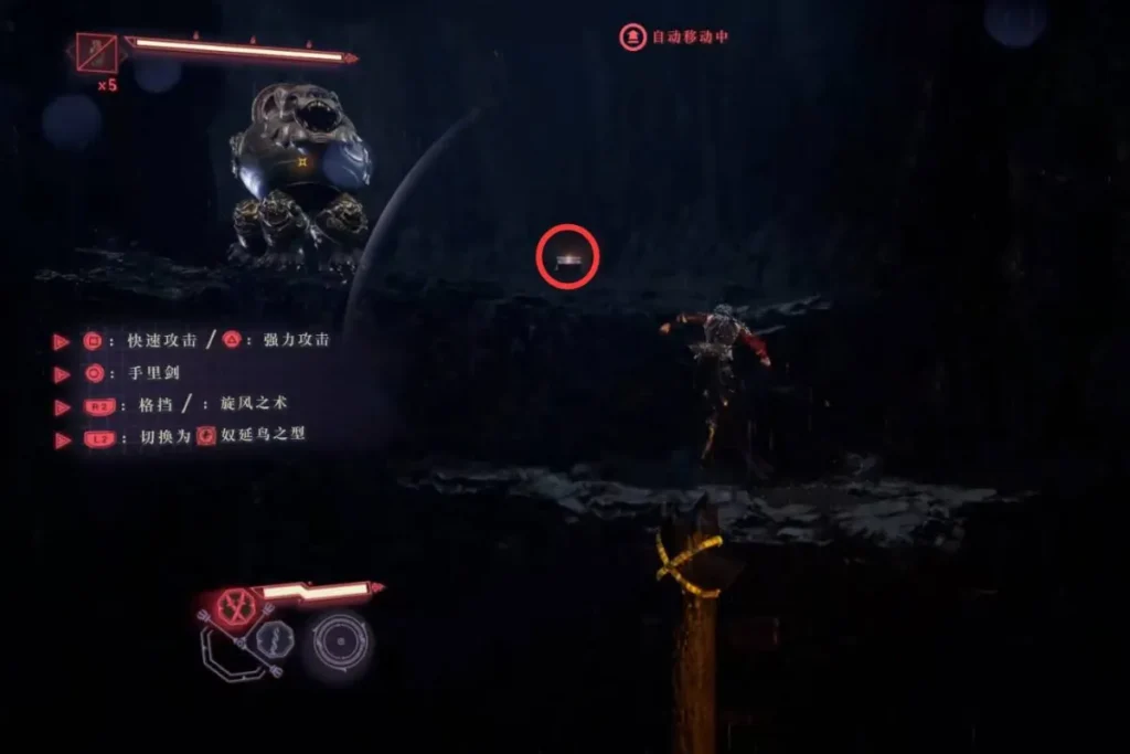 連續跳上豎井、一路跑酷往前後,又會遇到一隻巨型怪物,牠旁邊放著一個寶箱記得順手收走。