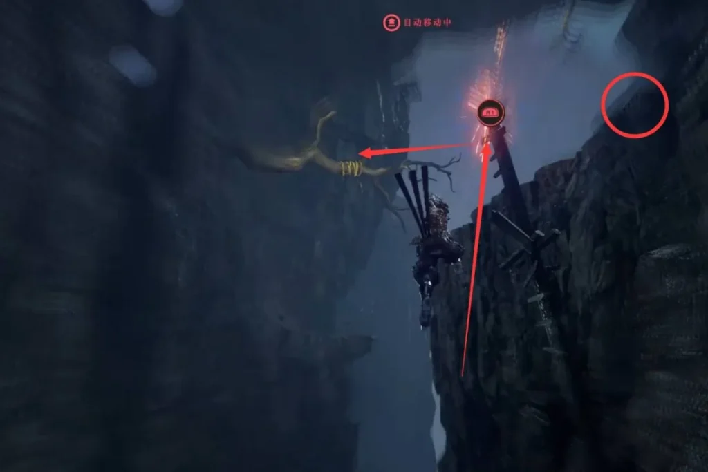 注意左側懸崖有一條隱藏的跳躍岔路,裡面還有一個寶箱可以取得。