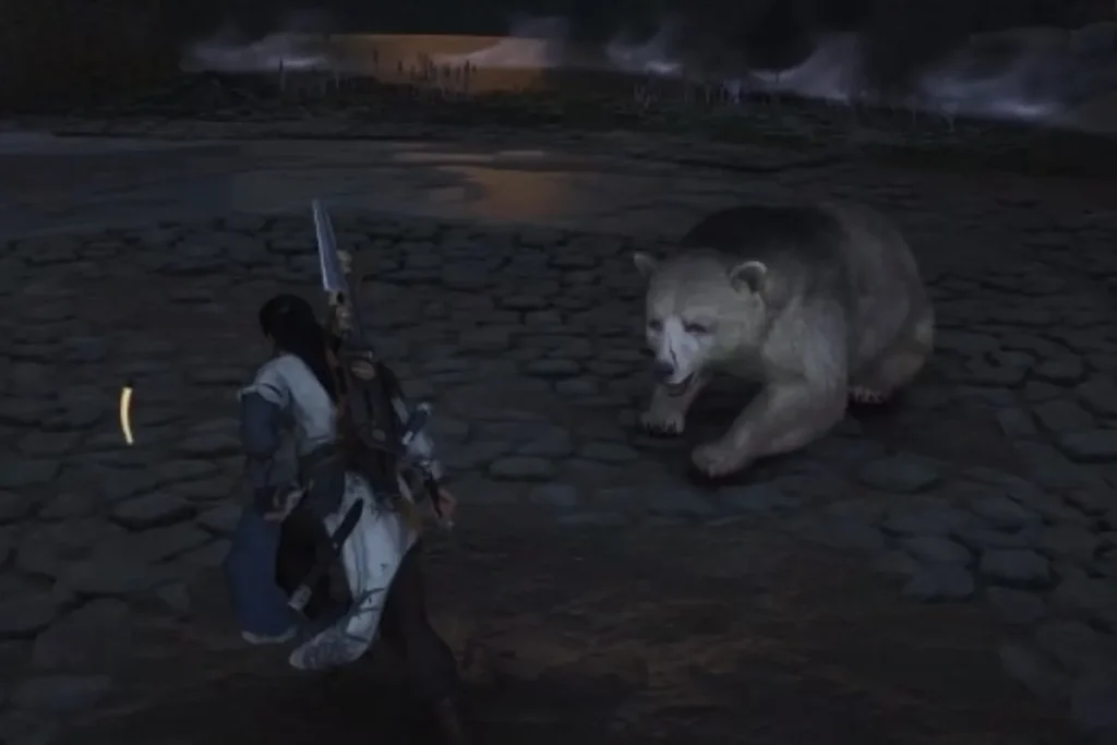 7.將熊仍到石頭 3 次後,擊敗厚皮白化黑熊完成太極之謎。